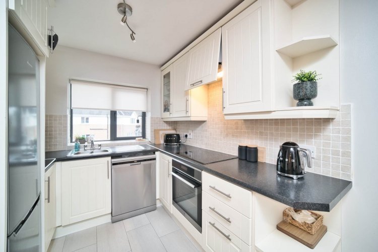 Items Included in sale: Oven, hob, extractor fan, fridge freezer, dishwasher, blinds, curtains and light shades.