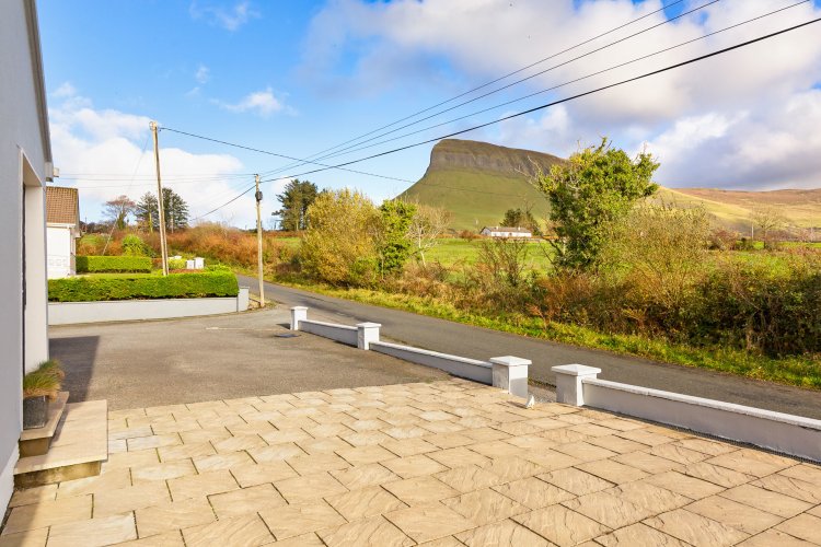 Nestled in the scenic countryside of Gortarowey, Drumcliffe, this impressive detached home sits on a circa 0.47 acre site and enjoys truly breathtaking views from every angle. Upon entry the property welcomes you with a bright and inviting entrance hall that sets the tone for the rest of the home. The living room is both spacious and light-filled, featuring beautiful large dual-aspect windows that perfectly frame the surrounding landscape, along with a feature fireplace that adds warmth and ambiance. The open plan kitchen and dining area is equally impressive, boasting large windows to showcase the views, a fully fitted kitchen, breakfast bar and ample space for family living and entertaining. Just off the kitchen is a generous utility room with plentiful storage and is plumbed for both a washing machine and tumble dryer. This level also comprises a shared bathroom and four double bedrooms, one of which benefits from its own en suite. The lower level of the home offers additional storage to the property with external access, and subject to planning may have many other uses. Ideally located, the property is within walking distance of the Benbulben Forest Walk, just five minutes? drive from Carney and Rathcormac villages, and less than ten minutes from Sligo town centre and Grange village. With endless beaches, scenic walks and recreational amenities right on your doorstep, this is a truly special home in an outstanding location. To arrange a viewing, contact Oates Breheny Group on 071 9140404.