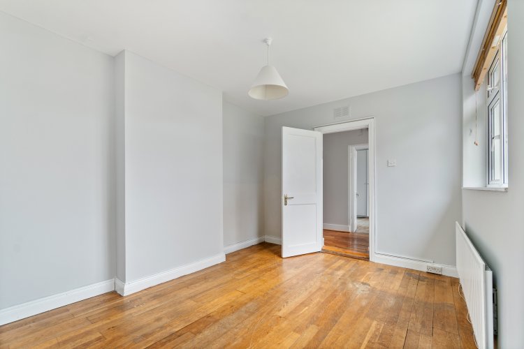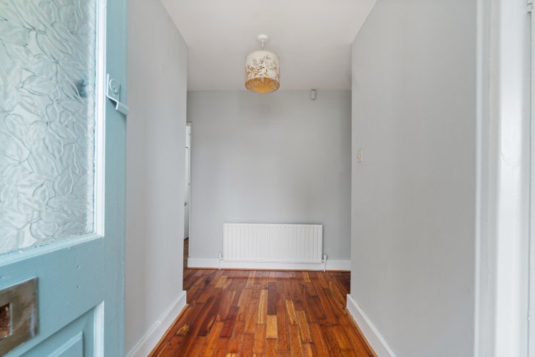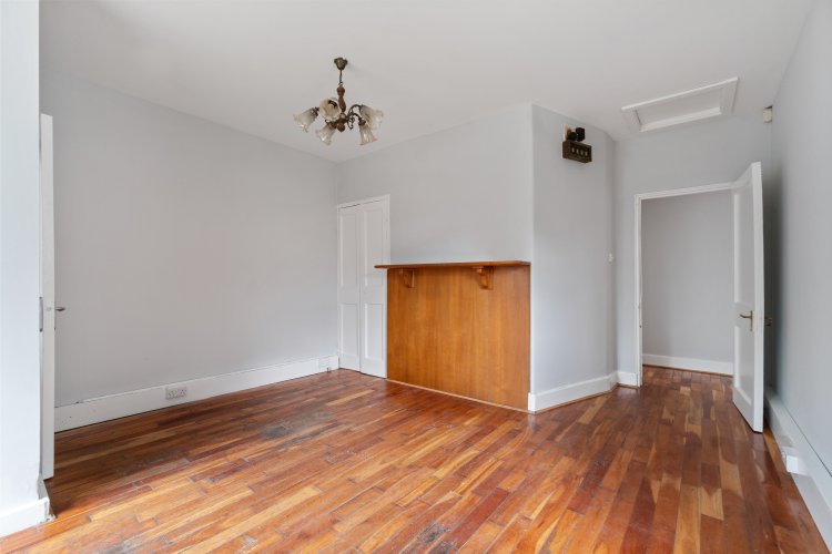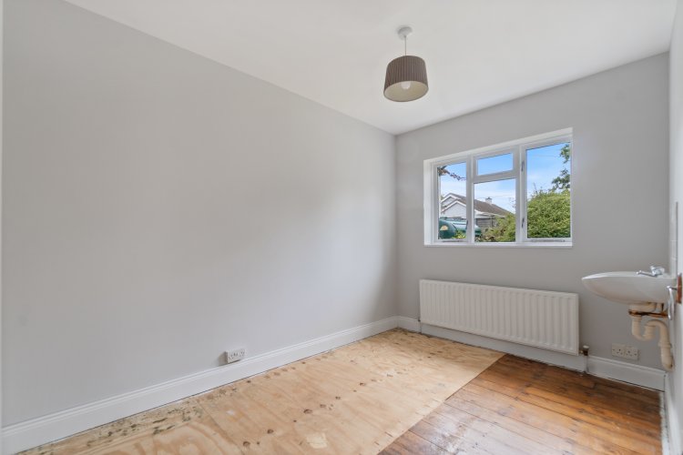 Finished with solid wood flooring, this room doubles as a living space. There is no kitchen currently fitted. This room opens to the back hallway/utility room and has a hot press off to the corner. |