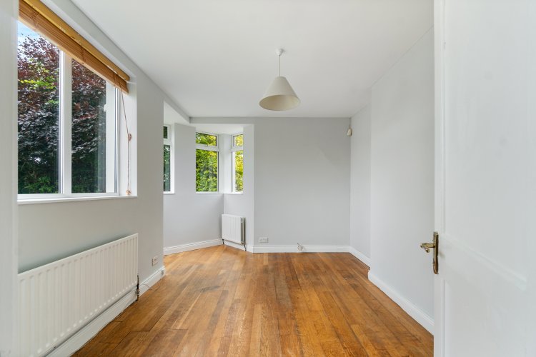 Finished with a timber flooring. It has built-in wardrobes, a wash hand basin and it has a bay window style feature. |