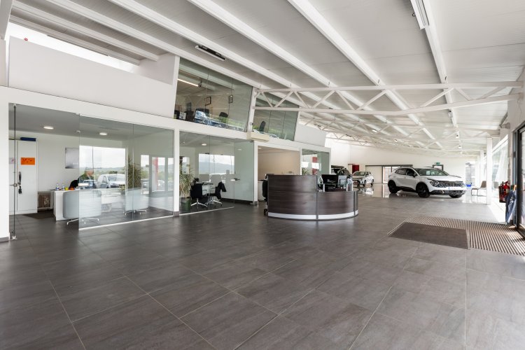 Set on a generous, elevated site of approx. 2 acres, the premises includes a high-spec, purpose-built showroom and workshop facility, extending to approximately 1,164 sq.m (12,529 sq.ft) and comprising a double height glazed showroom with 9 offices over two floors, a reception area, store room, valeting bay, handover bay, staff room and guest bathrooms. In the workshop, there are 6 fully fitted bays and 6 roller doors providing access. There is extensive secure yard space with gated access with ample parking.