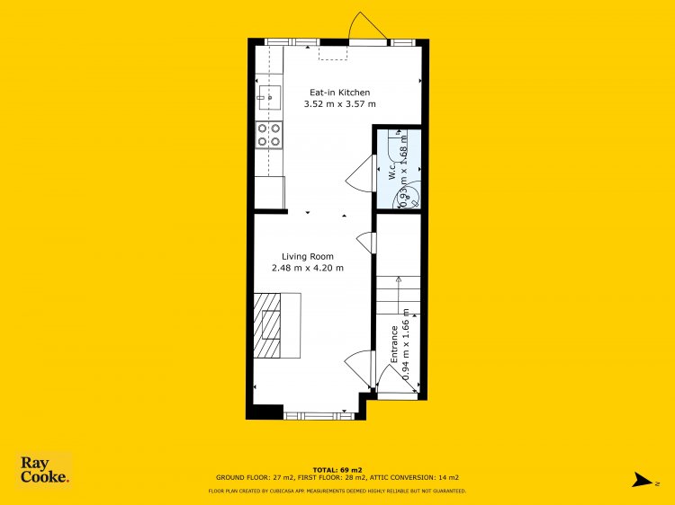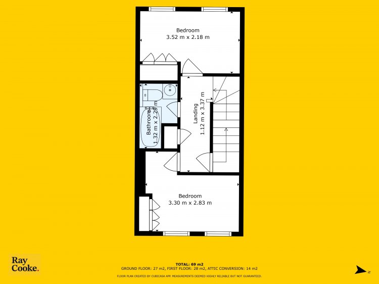Bright and spacious living accommodation of c. 72 sq m comprises downstairs of an entrance hallway, lounge, kitchen and downstairs w/c. Upstairs you will find 2 double bedrooms, family bathroom and access to the converted attic. The kitchen opens onto a low maintenance westerly facing rear garden and the front is not directly overlooked.