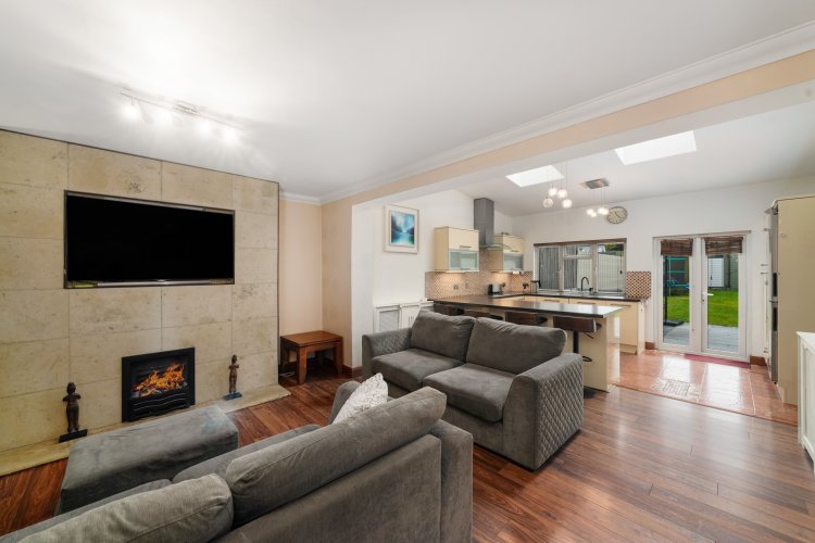 Features - c. 127 sq m – BER D1 – 3 bed/2 bath – Kitchen extension – Attic conversion – Self-contained studio to the rear – Off street parking for multiple cars – KITCHEN AND UTILITY APPLIANCES NOT INCLUDED – Gas fired central heating – New boundary wall to front – Upgraded windows – Added insulation – Laneway access to side – Open plan layout – Extra-large room proportions upstairs – Not overlooked to the rear – Sunny rear garden with side and rear access – Mature and highly sought after location – Prime position within this tree lined road – Within arm’s reach of all of Palmerstown’s essential amenities – Liffey Valley Shopping Centre within easy reach – N4 & M50 merely minutes away – Viewing highly advised!