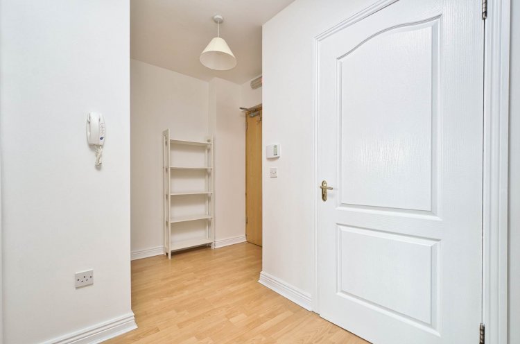Entrance Hallway 6.32m x 1.15m Laminate flooring, storage closet, light shade, intercom, attic access and hot-press.