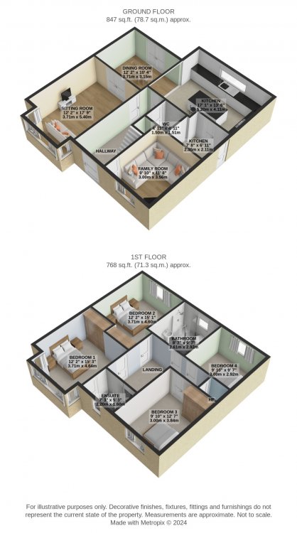 Consisting of entrance hall, living room, family room, kitchen, utility, dining, 4 double bedrooms (1 ensuite), main bathroom, downstairs WC and storage under stairs.