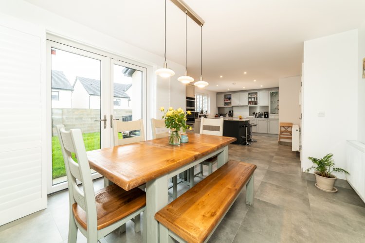 Dining Room Tiled flooring, double doors onto garden