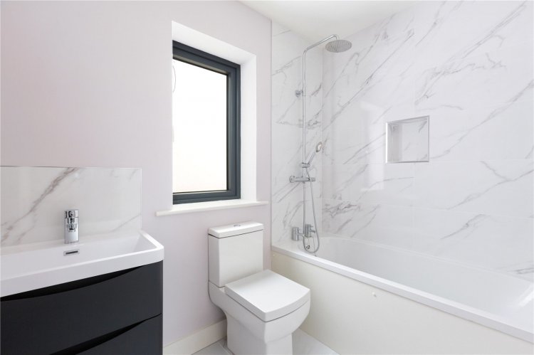 The spacious well laid out accommodation comprises an elegant reception hall with guest cloakroom off and comfortable living room to the front with a feature bay window. To the rear of the home there is a dramatic open plan kitchen/living /dining room with a large island centre piece for casual dining and a useful utility room off. A sliding door provides access to the sunny south easterly facing rear garden. Upstairs there five generous bedrooms – four on the first floor (one en-suite) - and a family bathroom while the extensive master bedroom on the second floor features a box bay windows and large en-suite bathroom.
