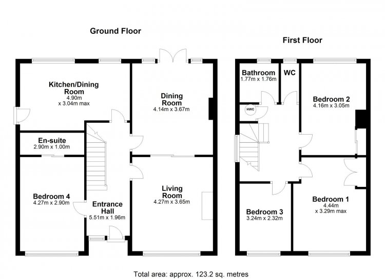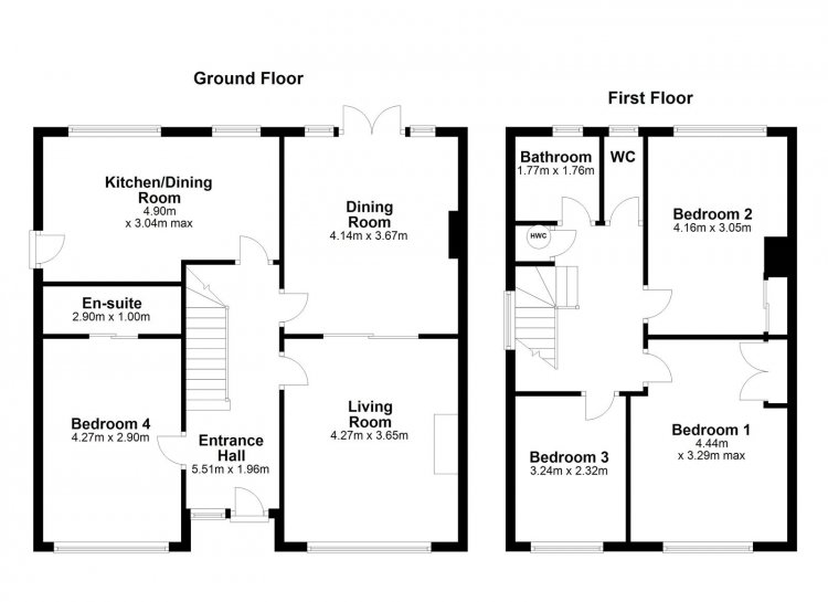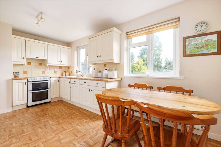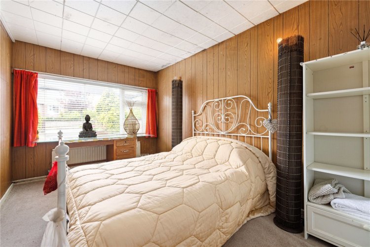 The spacious well laid out accommodation comprises an elegant reception hall, living room with stone fireplace and sliding doors to the dining room which has access to the rear garden via a French door. On the other side of the house the converted garage was at one time used as an office and more recently as a bedroom – it has a useful en-suite off. The kitchen completes the accommodation at the ground floor. Upstairs there are three generous bedrooms and a bathroom with separate w/c while outside there is a generous patio and rear garden.