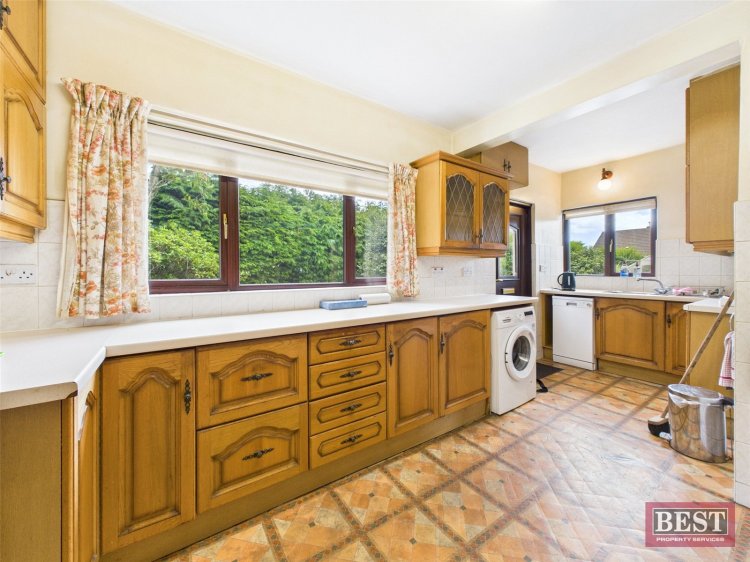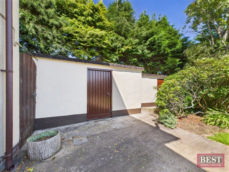 ACCOMMODATION & FLOORPLAN Internally the entrance hall leads to a generously sized living room to the left with a large bay window and on the right is a dining room with the kitchen located to the rear. On the first floor there are three considerable sized bedrooms one with a built-in storage unit, also there is a hot press and the main bathroom. Externally the property has a large tarmac drive to the front and rear, single car garage, block-built outbuildings, W/C and greenhouse located to the rear of the site.