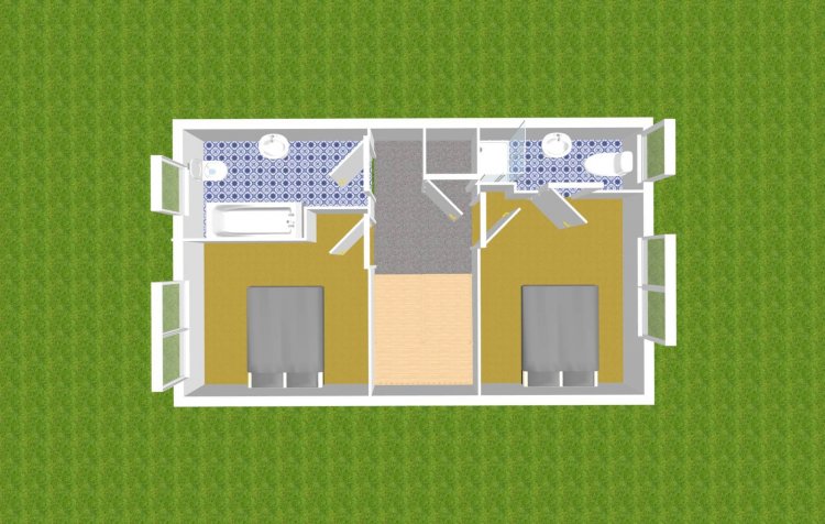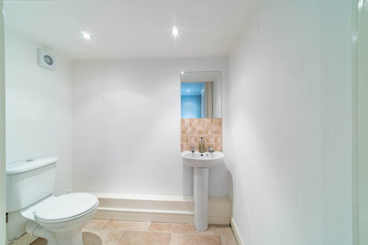Guest W.C. 2m x 3.5m Tiled flooring, w.c., w.h.b., fitted mirror, extractor fan, recessed lights and plumbed for washing machine.