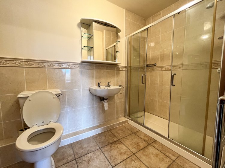 Accommodation: Reception Hallway: with carpet flooring, Security Intercom and doors to storage and hot press Living Room: 5.96m x 4.13m, with feature marble fireplace with brass surround, carpeted flooring in living area, patio door to balcony Dining Area: 2.98m x 2.35m open plan beside living area and door to Kitchen/breakfast area: 5.14m x 2.29m with an extensive range of built-in units and worktops, integrated oven, electric ceramic hob, stainless steel extractor fan, dishwasher, Washer/Dryer, stainless steel sink unit, mosaic tiled splashback, tiled floor, gas fired boiler, windows overlooking front of complex and balcony area Master Bedroom: 3.98m x 2.86m, with window overlooking front, leading to wardrobes area with a range of built-in wardrobes, carpet flooring, and door to En- Suite Shower Room: with white suite comprising fully tiled step in shower, wash hand basin with tiled splashback, and strip lighting over, wc, ceramic tiled floor Bedroom 2: 2.91m x 2.22m, with window overlooking front, built-in wardrobes, carpet floor Bathroom: with white suite with double shower, wash hand basin with tiled splashback, wc, strip lighting, part ceramic tiled walls, ceramic tiled floor Storage area and Hot Press off hallway