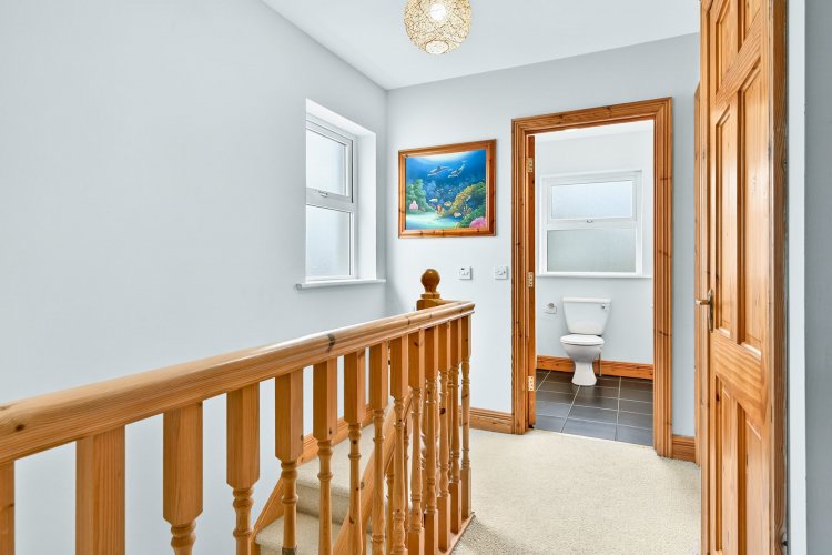 Set in the heart of Collooney, this clean and well-kept three-bedroom semi-detached home is perfectly positioned within minutes? walk of schools, a crèche, shops, local parks and transport services. On entering, the hallway features wooden flooring and a carpeted staircase. Off the entrance hall, the living room centres around a feature open fireplace, providing both warmth and a welcoming sense of comfort. Wooden double doors lead through to the fully fitted kitchen/dining area, which benefits from a tiled floor and glass sliding doors opening onto the rear garden, allowing for an abundance of natural light. A ground-floor WC completes the accommodation at this level. Upstairs, the landing leads to the main bathroom and three spacious double bedrooms, all carpeted, with the master bedroom enjoying a fully tiled en-suite. Externally, the property boasts a generous rear garden with patio area and off-street parking to the front on a tarmac driveway, making this an ideal home for a wide variety of buyers.