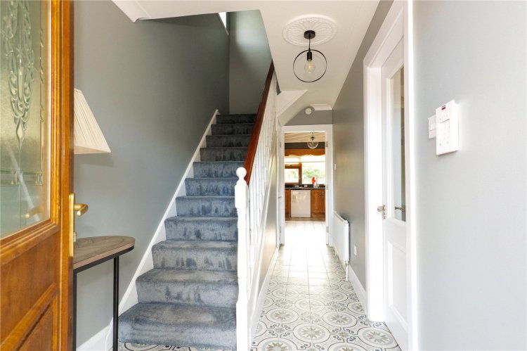 Comprising of approximately 108.3 sq.m over two stories, the ground floor is arranged between a large welcoming hall, with under-stairs guest bathroom, which leads to the living room with inserted stove fireplace, adjacent kitchen-dining area offering an open-plan layout which is excellent for availing of plentiful natural light from the westerly aspect.