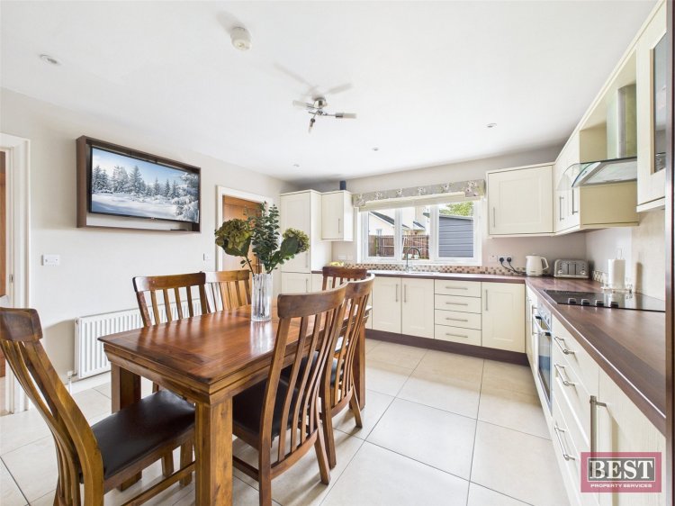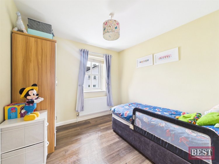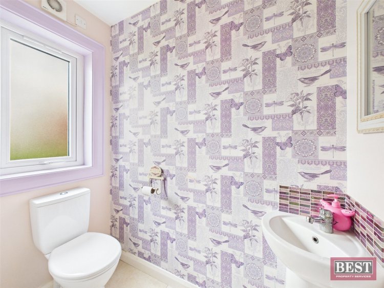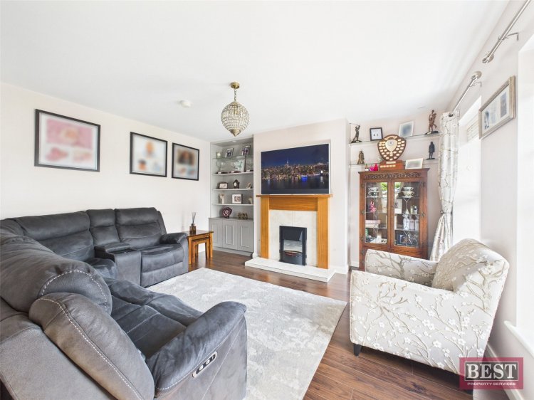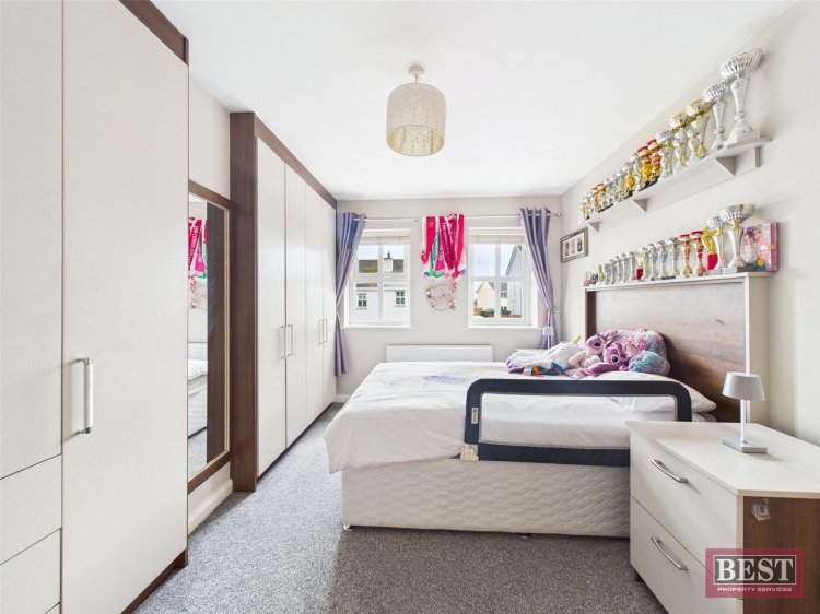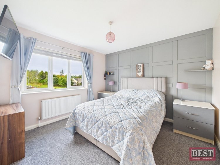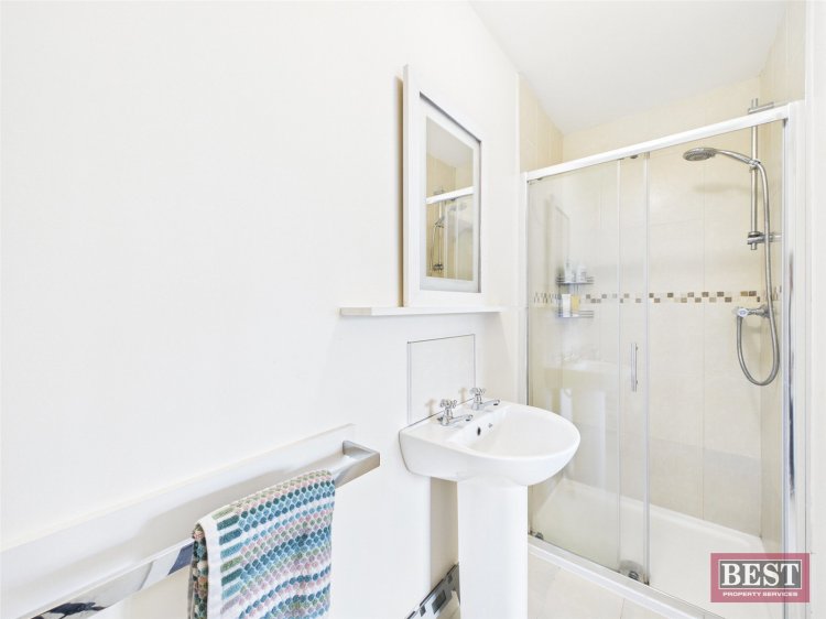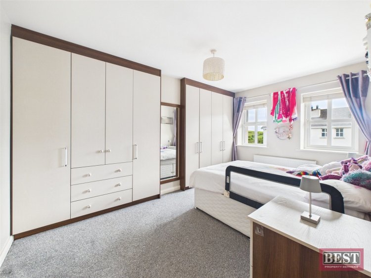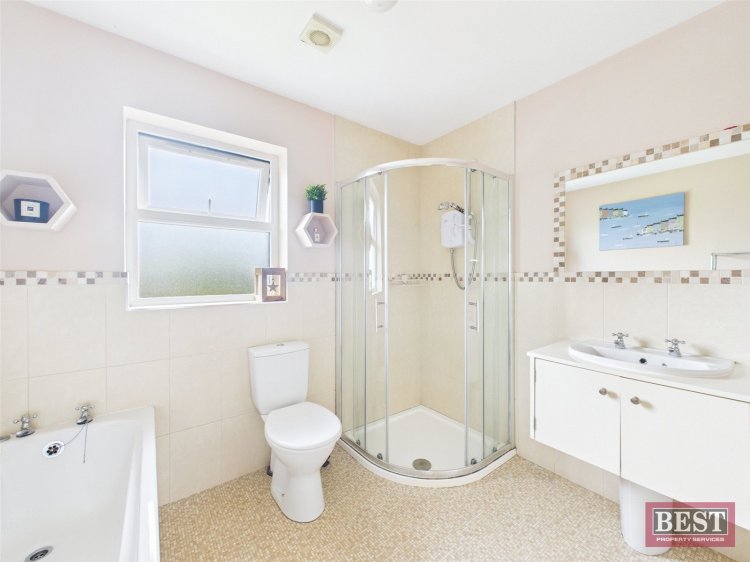 On the First Floor there are 3 generous sized bedrooms with the front facing bedroom having a bank of built in wardrobes. The main bedroom is to the rear of the home and there is an ensuite shower room with a three piece suite. The Family Bathroom has a white three-piece suite with vanity sink unit and fitted mirror with a separate fully tiled shower cubicle.