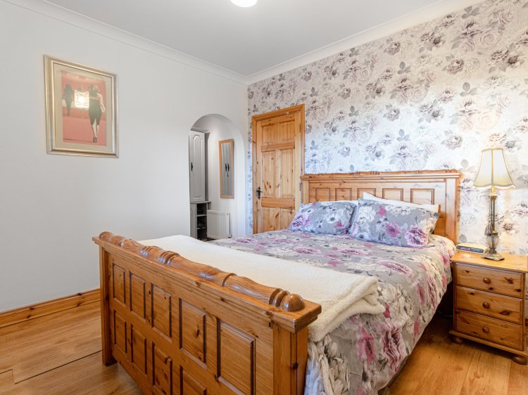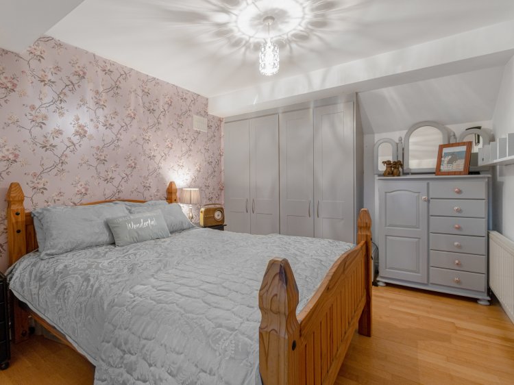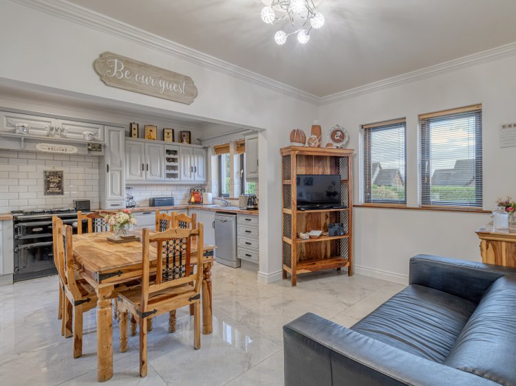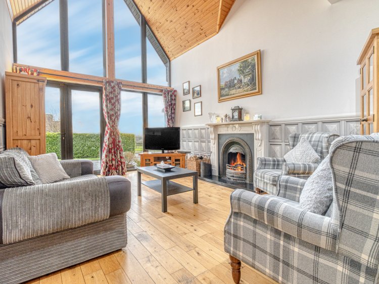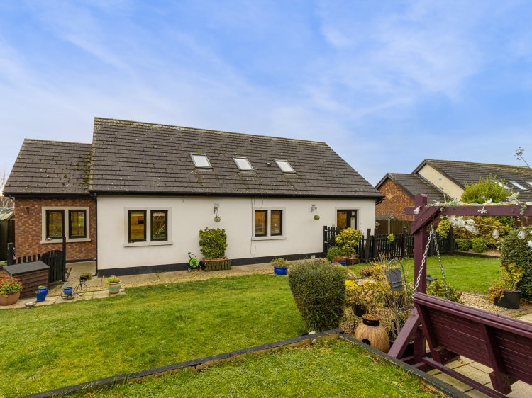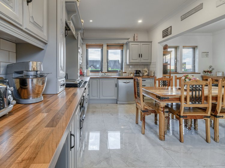 This beautiful residence, built in 2006, is situated in a very exclusive and beautifully maintained estate of only 28 stylish and spacious detached homes on generous and private plots. Upon entering this beautiful home, you are greeted with a large hallway, which leads into a stunning country style kitchen and dining area and a separate utility room that leads onto the beautiful rear garden. Further on through the hallway, on the ground floor there is a large sitting room with high vaulted ceiling and full-height feature windows and an open fireplace with cast ion surround. There are also three generously sized bedrooms (currently two of the bedrooms have been made into one large workspace, but this can easily be reinstated back into the two separate double bedrooms), on the ground floor (1 x Master with ensuite) and a family bathroom. Upstairs has two further good-sized bedrooms and a family bathroom and a second utility/storage room.