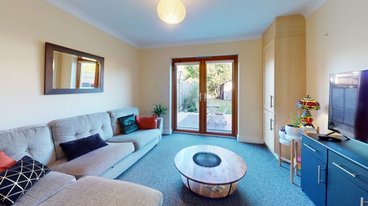 At the front of the property is a bright kitchen/dining area and to the rear of the property is a living room with French doors opening out to the private garden.