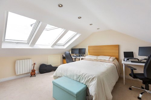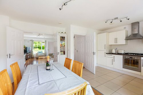 The living accommodation is orientated towards the south to maximise sunlight and comprises reception hall, a large living room with double doors opening to an extensive kitchen /dining room offering all mod cons and spanning the width of the house. There is also a guest cloakroom with w/c at this level. Upstairs there are three generous bedrooms (master en-suite) all with an excellent range of built in wardrobes together with a family bathroom. The attic has been converted to a useful home office and offers great space to enjoy. Outside the rear garden has been professionally landscaped and has maintenance free artificial grass and offers a perfect setting for al-fresco dining on those long lazy summer evenings.