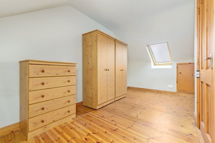 Double room with Pine wood flooring. Skylight. Storage to eaves.
