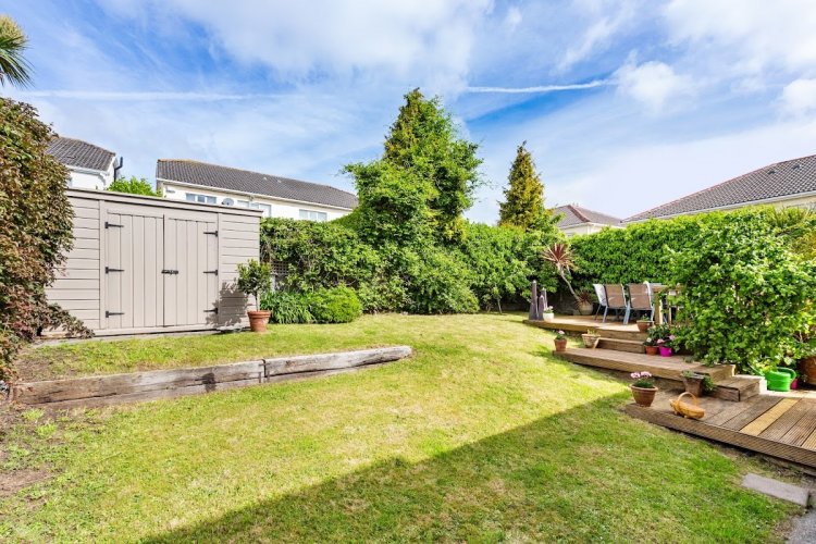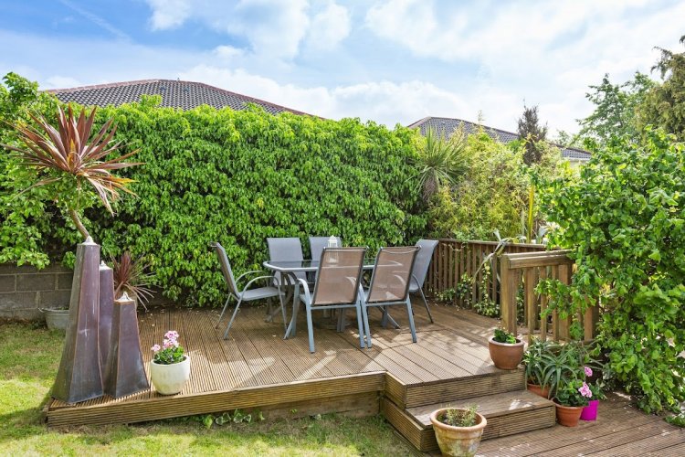 Easily managed rear garden with feature sun trap decking area