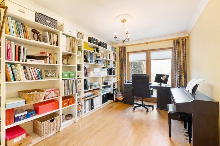 Reception/TV Room: 4.66m x 3.25m with a feature high panelled ceiling vaulted with recessed lighting and bay window to front