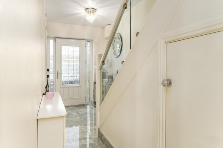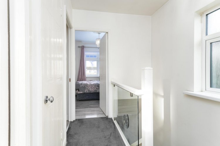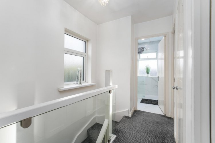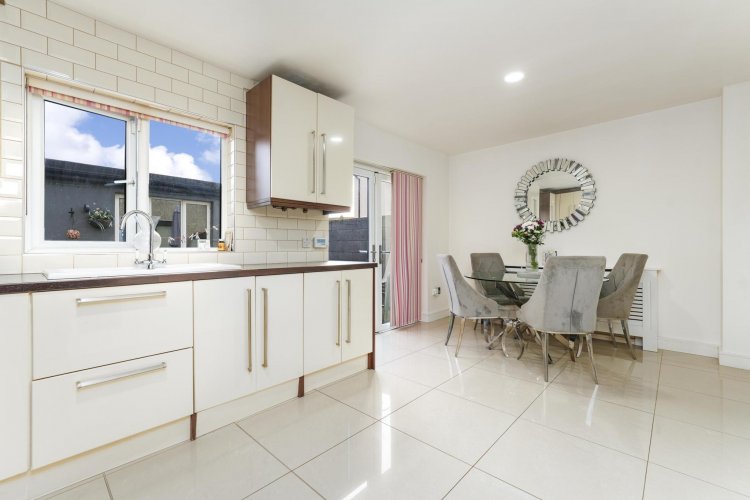Bright and spacious internal living accommodation of c. 80 sq m comprises of entrance hallway with living room to the front and kitchen/dining room to the rear. Upstairs consists of 3 spacious bedrooms with the main family bathroom and the master ensuite. The double doors leading from the kitchen set onto a SOUTH facing rear garden with a self-continued unit which is wired for a host of potential use. The bonus side entrance brings you to the front with a large driveway for ample parking.
