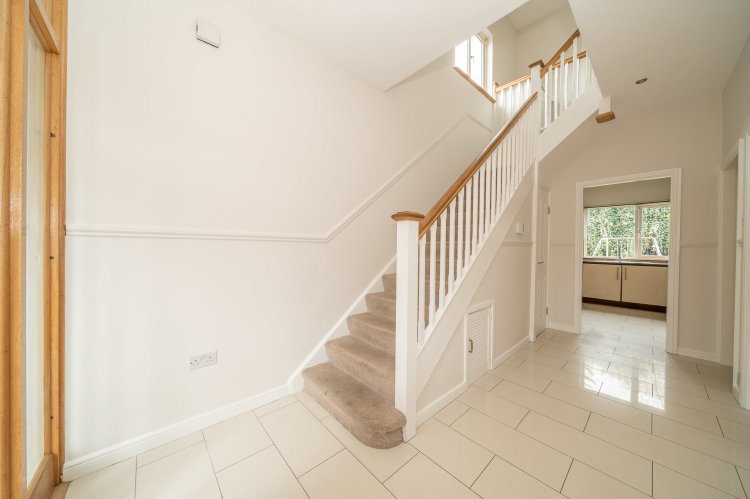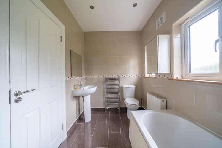 This stunning property boasts a gated driveway leading to an attractive facade and a side-access car garage. A storm porch with a tiled floor opens into a welcoming entrance hall featuring tiled floors, understairs storage, and a guest w.c. To the right of the hallway, a spacious living room showcases semi-solid flooring, elegant coving, and a feature fireplace, creating a warm and inviting space. The property also offers a bright dining room which opens directly onto a sun filled rear garden perfect for entertaining or relaxing outdoors. The U shaped kitchen is fitted with tiled flooring, ample counter and cupboard space, and tiled splashback. Adjacent to the kitchen is a large utility room, which also provides convenient access to the garage. Upstairs, the property comprises three generously sized bedrooms, two of which feature built-in wardrobes. The fully tiled family bathroom completes the property, offering both a walk in electric shower and a separate bath.