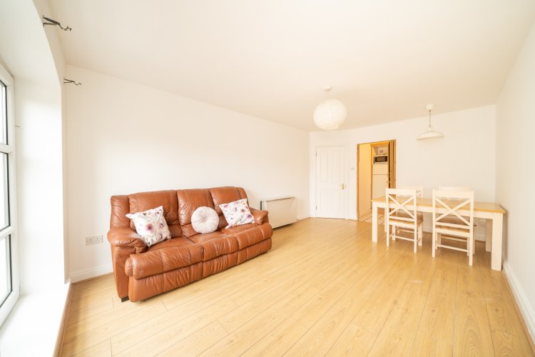 This stunning property features an entrance hall with laminate floors and a hot-press. To the right of the hallway is a generous sized fully tiled family bathroom with a tiled floor, partially tiled walls and wall mounted shelving. The spacious double bedroom enjoys laminate floors and sophisticated fitted wardrobes. The laminate floors continue to a light filled open plan living room and dining area with double doors to a south facing balconette. A sliding door opens to the L shaped kitchen with a tiled floor, splashback tiling and plenty of counter & cupboard space. This amazing apartment also benefits from a secure underground designated car space which is serviced by a lift.