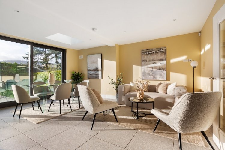 Bright, spacious accommodation c. 156 Sq. M (1,679 Sq. Ft) Architect designed home which has been entirely re-built and insulated with a double height extension to rear and side of house and internally re-modelled in 2017 Presented in pristine showhouse condition and ready to move into B2 energy rating with south facing aspect Newly designed Kube kitchen with Miller Brothers quartz worktops in an open plan design to incorporate a large feature Island, dining and additional family living space Floor to ceiling Sliding Doors system at rear designed to bring the outdoors in and maximises light with south facing uninterrupted view to the mountains Underfloor heating in kitchen, family area, utility, WC and office/playroom Stanley multifuel stove fitted in living room Interior designed finish with neutral colour schemes throughout Prime upmarket family location within a 6 minute walk from Kilmacud LUAS Gas fired central heating Double glazed windows and doors Digital burglar alarm system Landscaped rear garden with a feature rear patio area Close to M50, Beacon Shopping Centre, Dundum Town Centre, Sandyford and Stillorgan Business Parks and Central Park