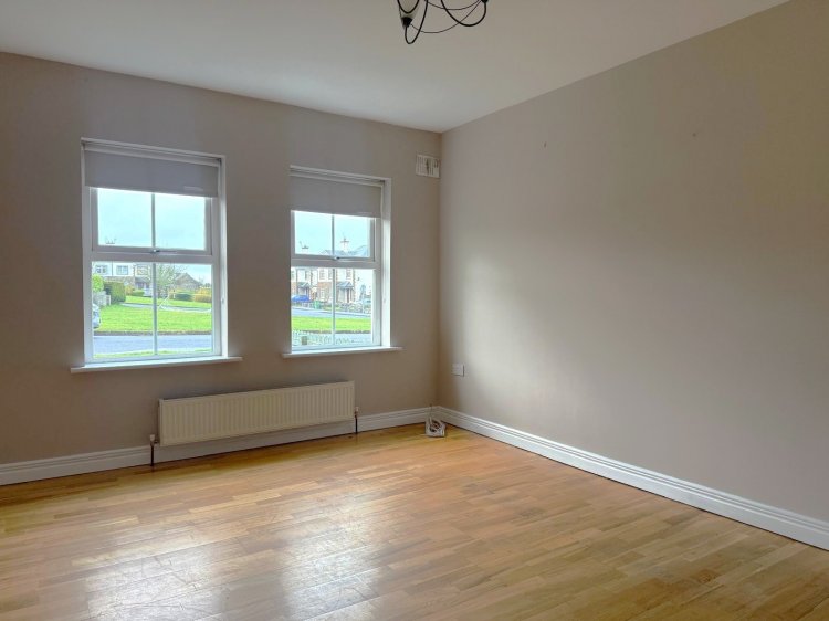 Finished with a laminate wood flooring, has an open fireplace with a surround fireplace and is double windowed to the front overlooking the front garden and also overlooking the green area which is located directly opposite the property.