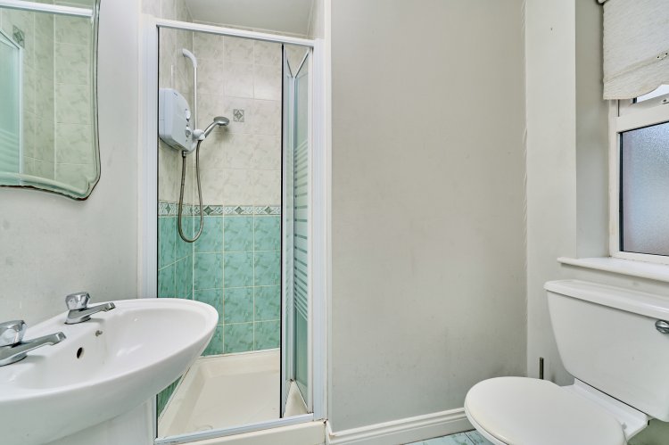 Fully tiled with shower, wc & whb