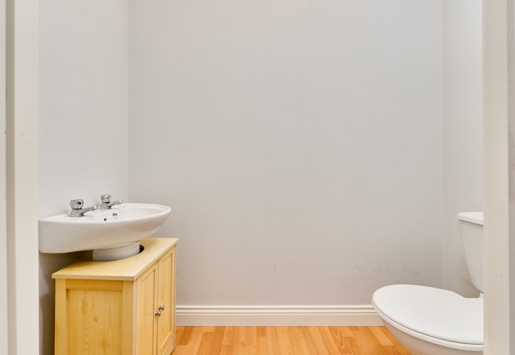 with laminate wood flooring, wc & whb