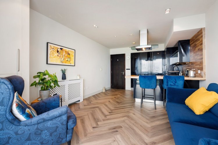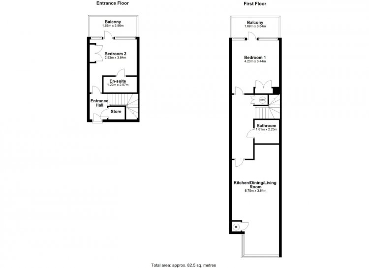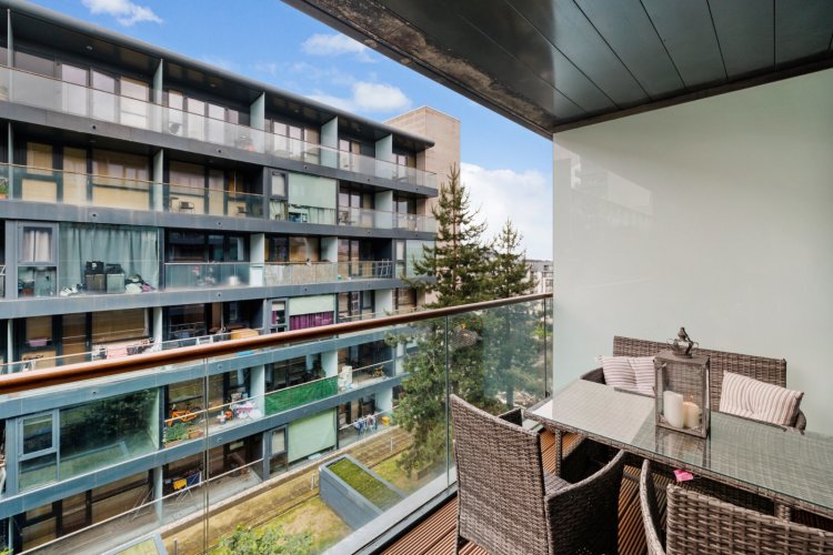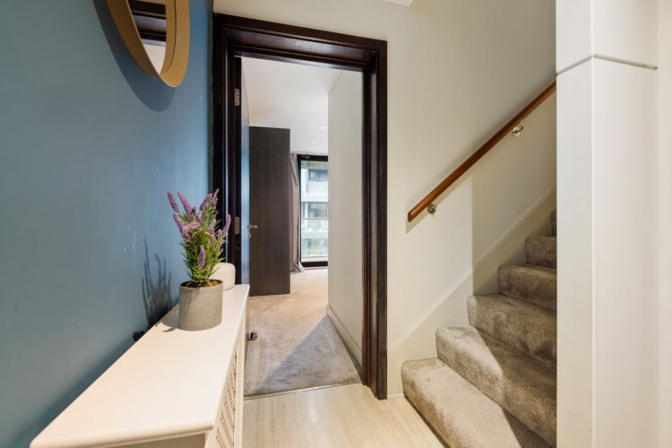 A dual aspect apartment with two private balconies, the accommodation within briefly comprises entrance hall with understairs storage off, master bedroom with en-suite shower room and private balcony. A flight of stairs leads to the upper floor accommodation comprising an open plan kitchen/living room with floor to ceiling box bay window, a second bedroom which is generous in size and a main bathroom. There is a 2nd balcony off the second bedroom. One designated parking space is included.