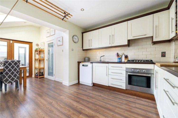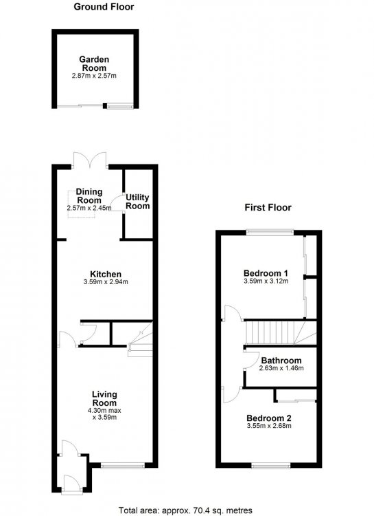 Boasting exceptionally generous bright and airy accommodation that will not disappoint, the space comprises of an entrance lobby opening to a large living room, a separate kitchen to the rear offering all mod cons, and opening to a dining area to the rear. A useful utility room completes the accommodation on the ground floor. Upstairs there are two double bedrooms and in keeping with the rest of the accommodation, and a modern, recently renovated bathroom. There is ample parking to the front while to the rear there is a ‘sun trap’ rear garden with a south easterly orientation. A brilliant and spacious multipurpose garden room – currently used as a home office, is located in the rear garden.