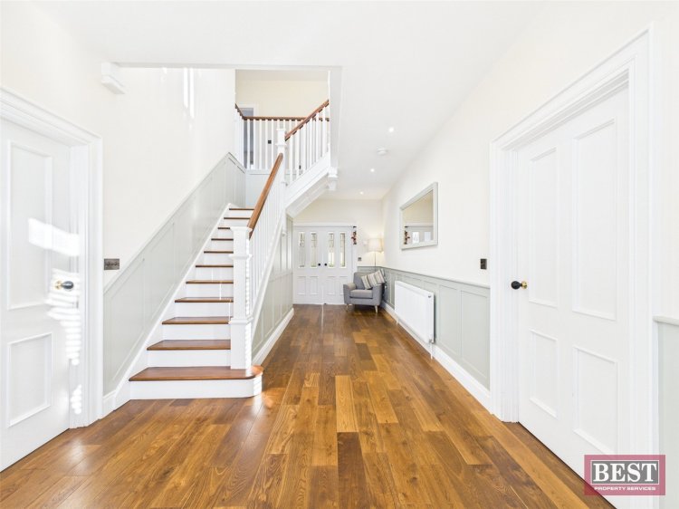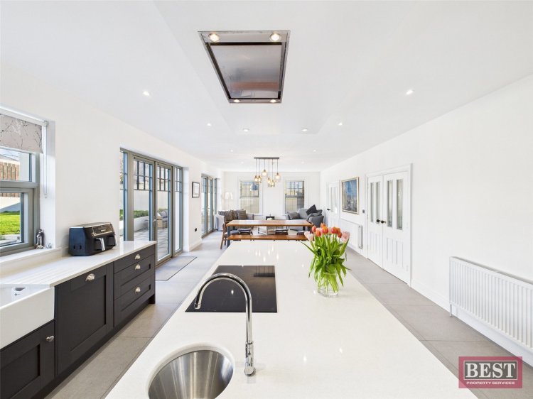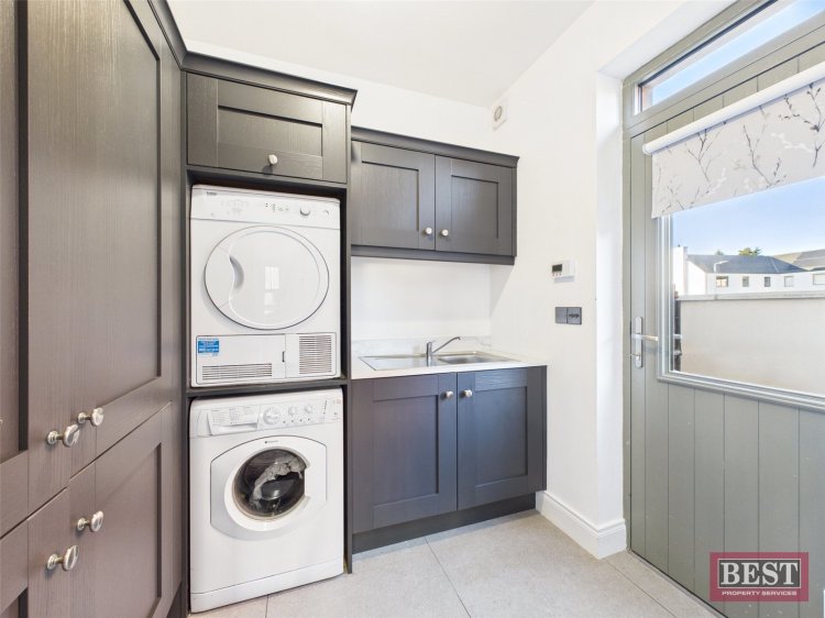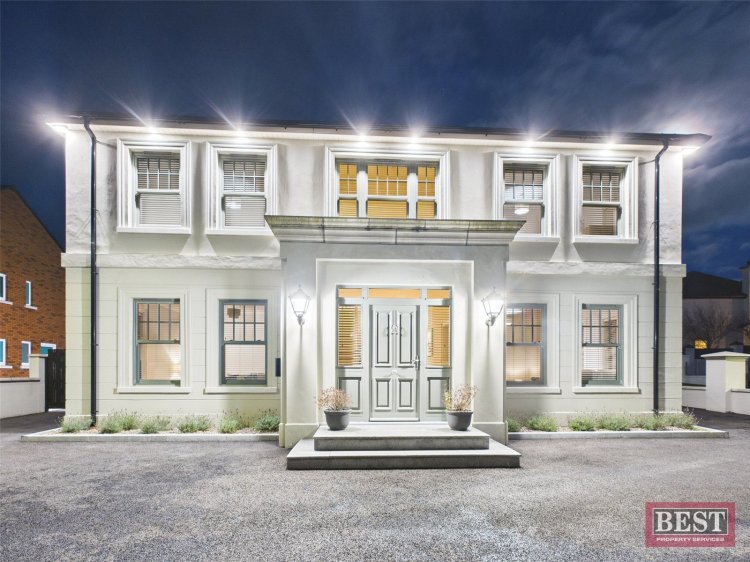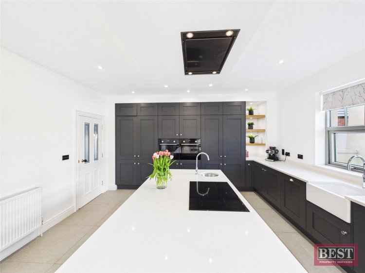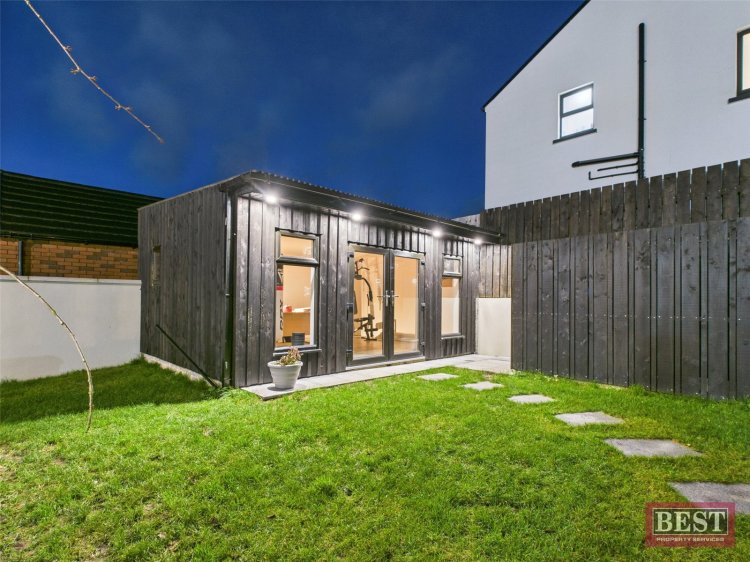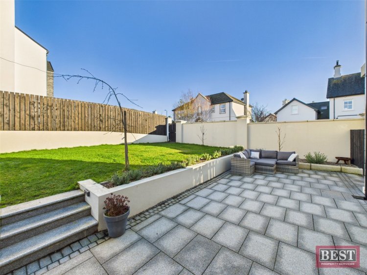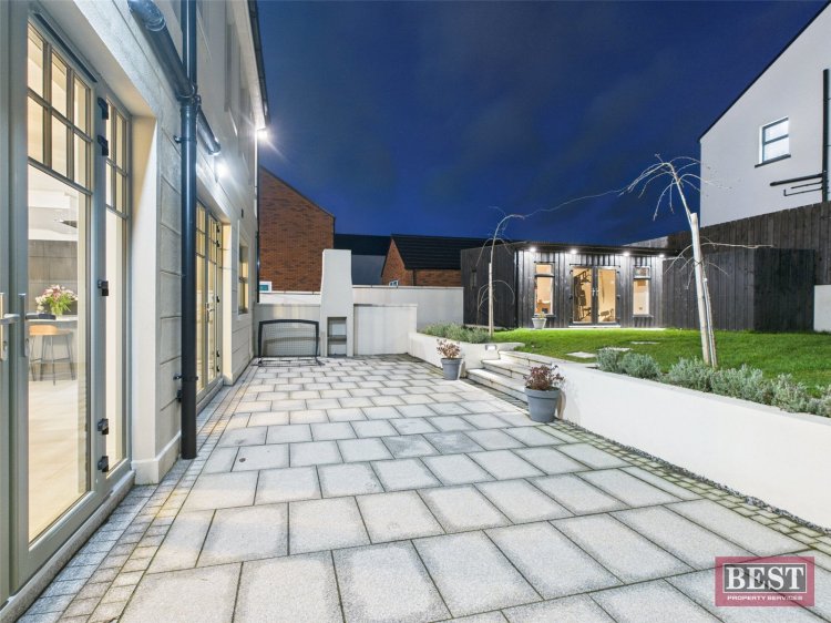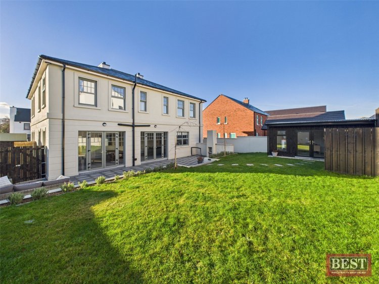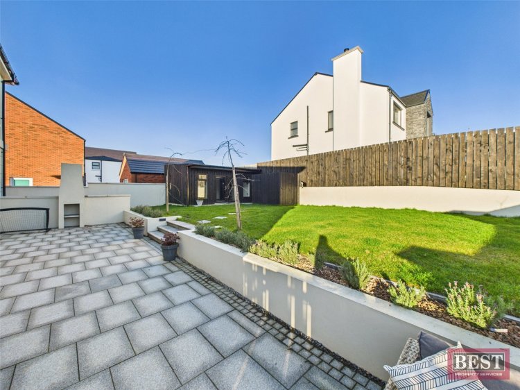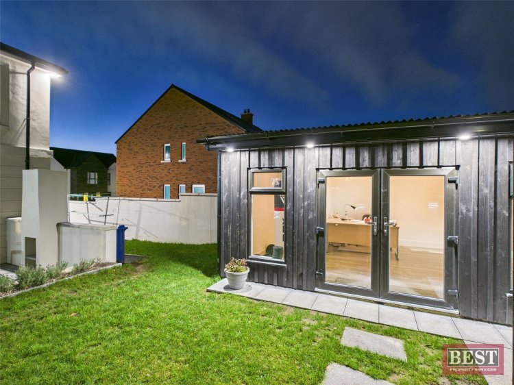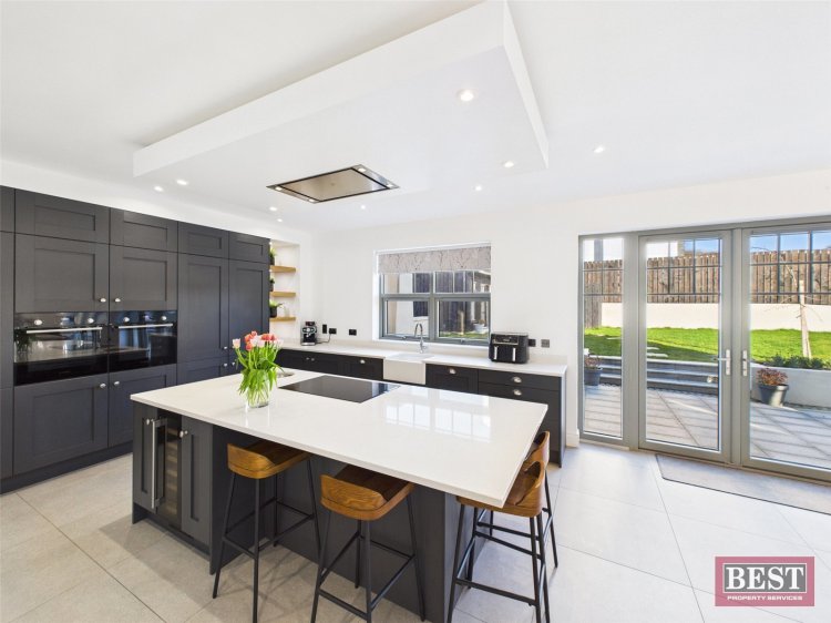 New to the market, Best Property Services are proud to present a rare opportunity to purchase this luxury, recently built, highly energy efficient, four bedroom, two reception detached property in the much sought-after Seafield’s, just off the Warrenpoint Coastline When entering the property you will be greeted by a large entrance hall with double height ceilings, engineered hard wood flooring and exquisite wall panelling giving the house a luxurious feel. There are two living rooms either side of the hallway with the larger of the two on the right hand side connecting via double doors to the kitchen/dining room. The living space on the left hand side could conveniently act as a fifth double bedroom or study if required. To the rear of the property is the heart of the home with kitchen / dining space that stretches the full width of the property. The kitchen comes complete with a full range of contemporary kitchen units, large kitchen island and access to a fully fitted utility room. The dining space has plenty of room for a family sized table and looks out onto the rear garden through two sets of double doors. Additionally, for convenience, there is under stair storage and a downstairs w/c Moving upstairs there are two double bedrooms to the front and two to the rear of the house, all four bedrooms include an ensuite bathroom. In addition to this, three of the four bedrooms include walk through wardrobe space The outside of the property is just as well thought out as the inside with a rear patio just off the kitchen ideal for outdoor dining and socialising, a stepped up lawn and garden room with w/c currently being used as a home gym. To the front of the house there is a pillar block entrance, tarmac driveway and secure side access.