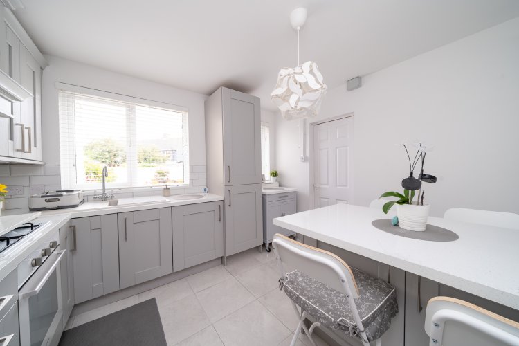 This superb home boasts off street parking behind a gated fence as well as a stylish pebbledash façade. Upon entering the home, the hallway gives access the main living areas on the ground floor and feature laminate flooring that carries throughout the property. The sitting room is just off the entryway and benefits from a large south-west facing window and feature fireplace. The kitchen is accessed at the end of the hallway, The kitchen was recently renovated with shaker style cabinetry, integrated appliances and a tile splashback and flooring. The bathroom is located opposite the kitchen and boast a corner shower unit and modern sanitaryware. The garden is just off the hallway with mature rose bushes and lawned garden, ideal for entertaining or enjoying the nice weather.
