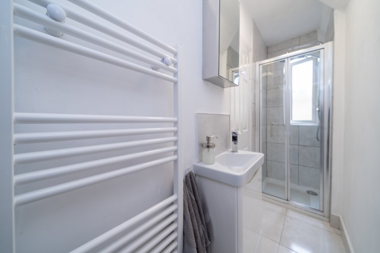 Upstairs are three double bedrooms. The first bedroom overlooks the back gardens and could be used as a children's bedroom or home office. The second bedroom is spacious and bright with new laminate flooring. The main bedroom enjoys a South-west facing aspect and benefits from two large windows and laminate wood flooring.