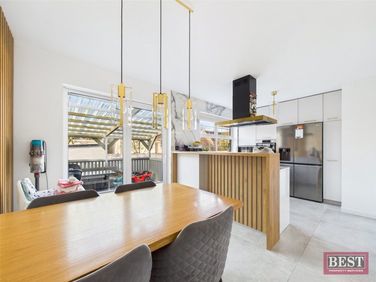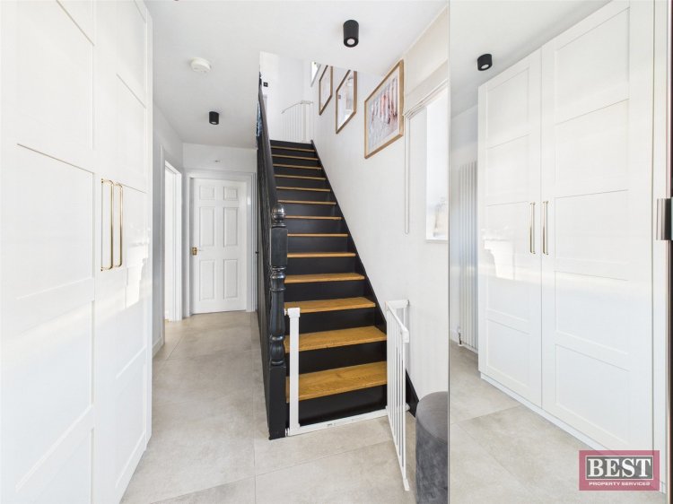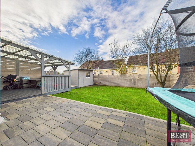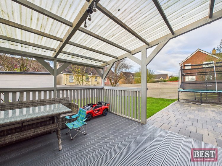 Externally to the rear there is a south - facing garden laid in lawn with timber fencing to side and rear boundaries along with an electrically powered gated access to the side. Additionally the covered decking area is an ideal space for outdoor entertaining with added privacy. The front of the home offers a tarmac driveway with off-street parking and gardens laid in lawn.