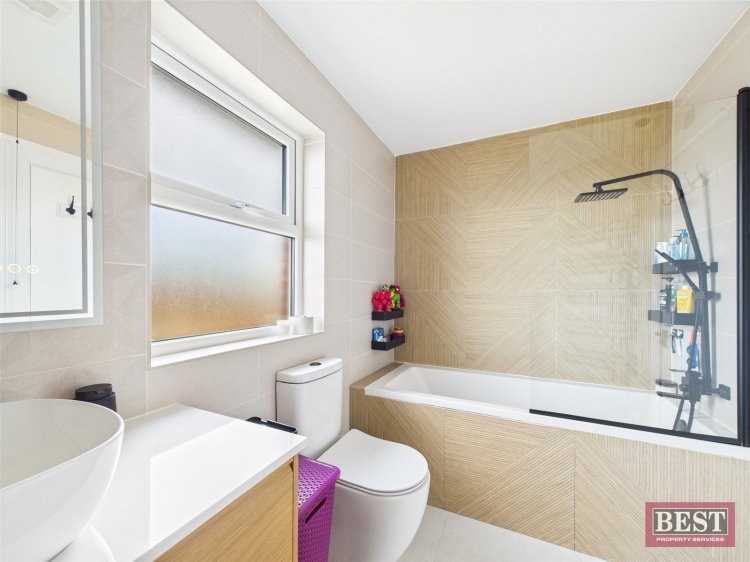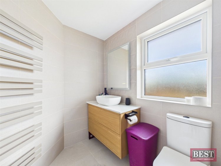 On the first floor, there are three generously sized bedrooms, along with a modern family bathroom complete with a three-piece suite with a vanity sink unit. The hotpress is also located on this level and there is access to the roofspace.