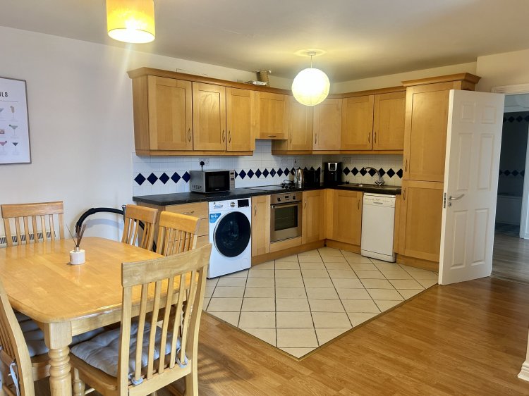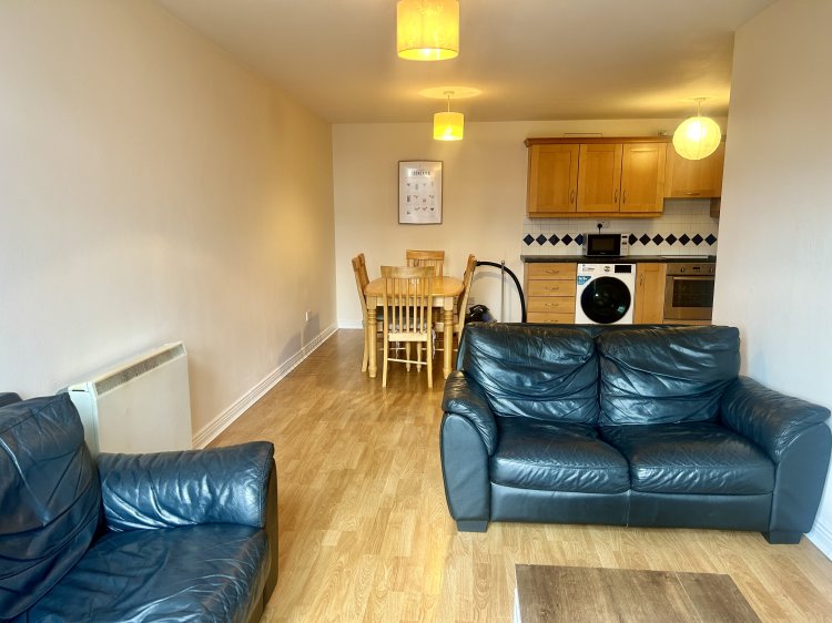The apartment offers well-proportioned accommodation, comprising an entrance hallway, a bright, open-plan kitchen and living area, two spacious double bedrooms, and a main bathroom. The property is presented in good condition throughout and benefits from a practical layout and a BER rating of C2.