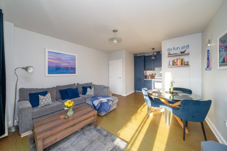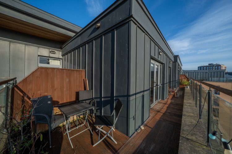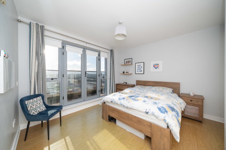 This exceptional sixth-floor apartment features an inviting entrance hall with laminate flooring, two storage rooms, and a hot press. Off the hallway are two bright double bedrooms, both finished with laminate flooring and built-in wardrobes. The main bedroom also enjoys direct access to a large south-facing decked terrace with amazing views of the Dublin Mountains. The generously sized family bathroom is fully tiled and fitted with well-maintained sanitary ware. The light-filled open-plan living and dining area features laminate flooring and double doors leading out to the terrace, creating a wonderful sense of space and flow. Completing the accommodation is an L-shaped kitchen with laminate flooring, tiled splashback, and ample counter and cupboard space. This fantastic apartment benefits from a secure, designated underground car space and lift access. Southgate enjoys a prime corner position at Cork Street and Ardee Street, with a wide range of amenities right on your doorstep and the city centre just a short walk away and is situated within a 15 - minute walk away from both the green and red luas lines. An excellent selection of cafés and restaurants can be found nearby in Christchurch, Meath Street, and Newmarket Square. Both College Green and St Stephen?s Green are within easy walking distance, making this an ideal city-centre location.