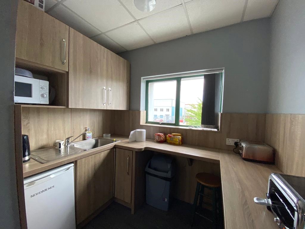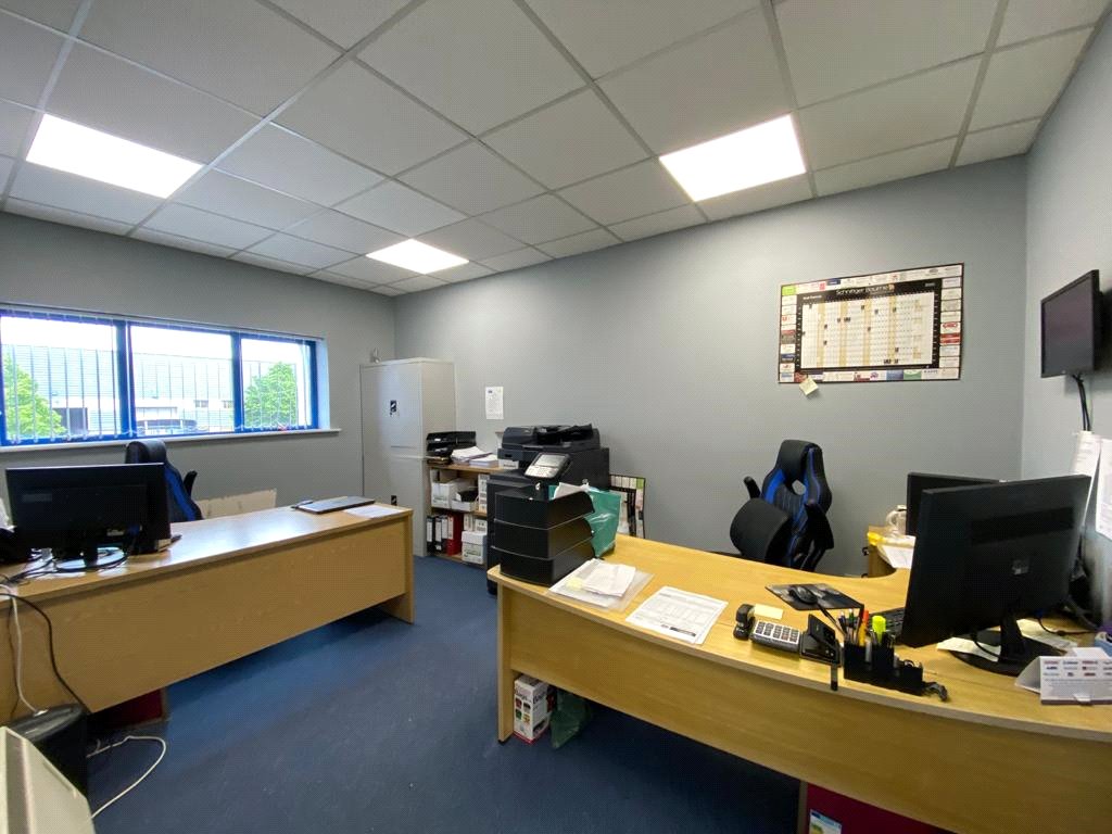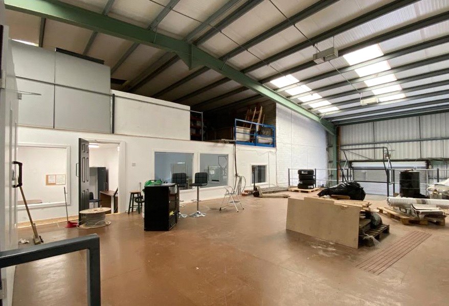 The property comprises a mid-terrace high bay warehouse unit with office accommodation at ground and at first floor level. A pedestrian door provides access to the office accommodation while the warehouse is accessed by an electric roller shutter and also benefits from an additional mezzanine floor. Construction is by way of a steel portal frame with concrete block and steel cladding with metal deck roof. Internally the office accommodation is bright and airy and benefits from cat 5 cabling.