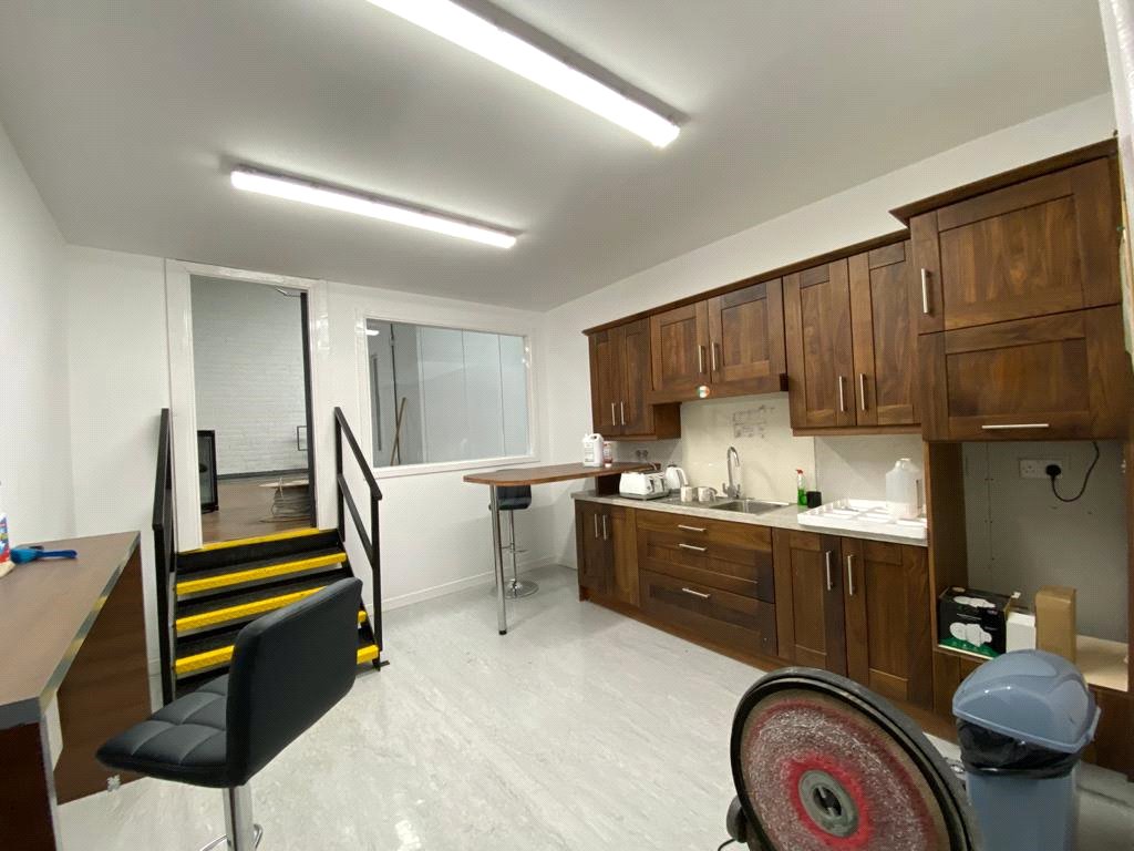 The entire footprint measures c. 23m x 13m including offices and staff facilities of c75 sq. m with additional temporary offices added by the tenants extending to 110 sq m. There is also an additional mezzanine.