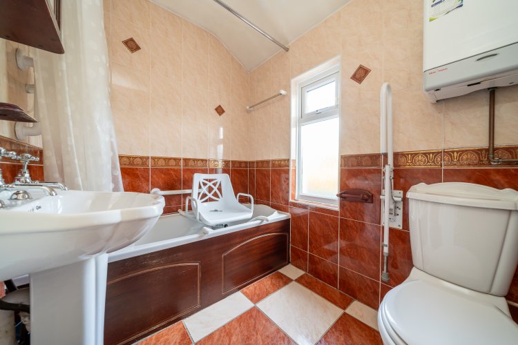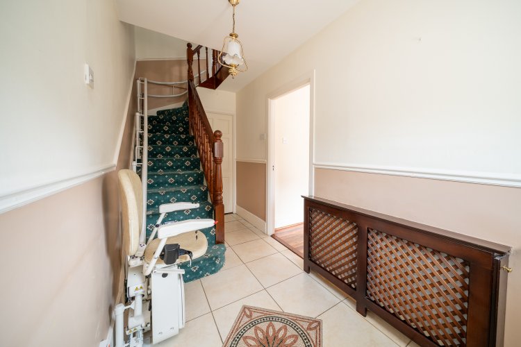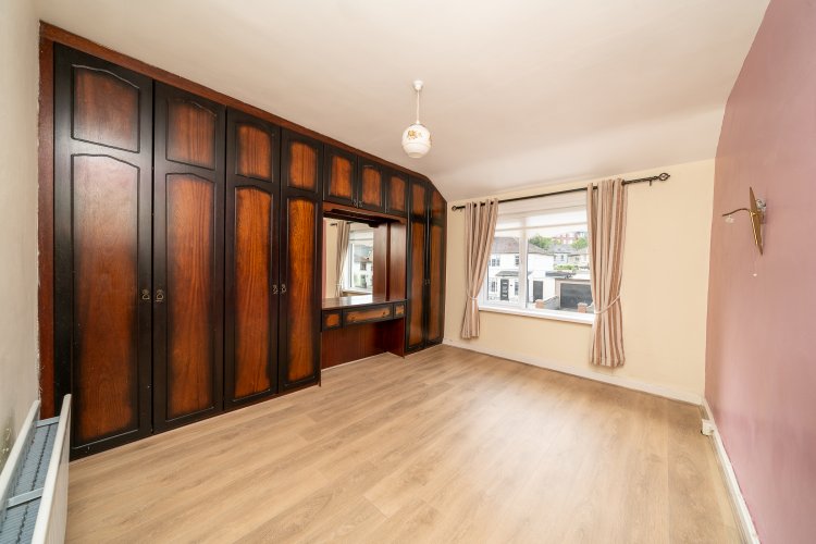 Upstairs consists of three bedrooms and the family bathroom. The generous sized bathroom is fully tiled and has an electric shower. The bedroom to the rear of the home has carpet and ample fitted wardrobes and built in shelving. The main bedroom is situated at the front of the home and enjoys laminate floors and wall to wall fitted wardrobes and a vanity unit. The accommodation is completed by the third bedroom which has carpet and fitted wardrobes. The attic is accessed via the landing.