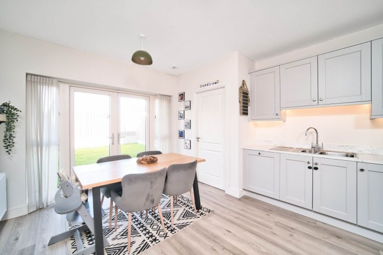 • Immaculate 'A' rated three bedroom semi- detached home extending to approx. 120 sq.m/1291 sq ft • Accommodation comprises hallway, living room, kitchen/dining room, utility, guest w.c, three bedrooms with master en -suite and family bathroom • Approached by cobble lock drive with ample parking, generous rear garden • Millerstown is just 6km from the university town of Maynooth and is within a few minutes' walk of Kilcock village • The perfect family location, with sporting, recreation, excellent schools and a university right on your doorstep • Excellent transport links with Kilcock railway station, regular bus services and M4 link at one's doorstep makes commuting to Dublin, Kildare and Meath surrounds hassle free