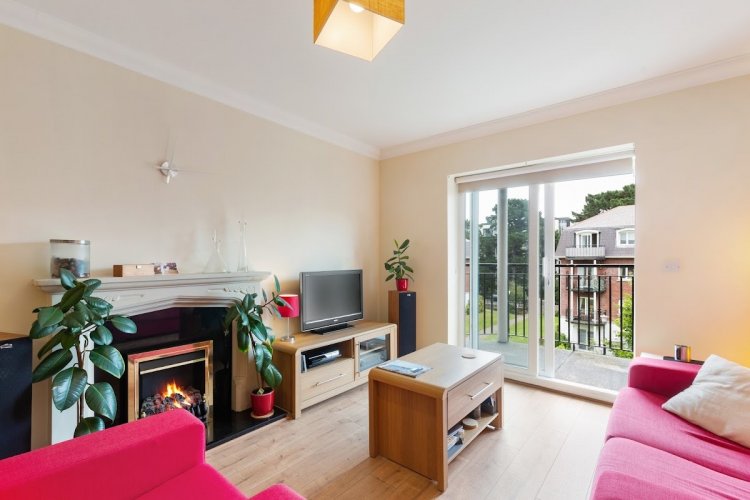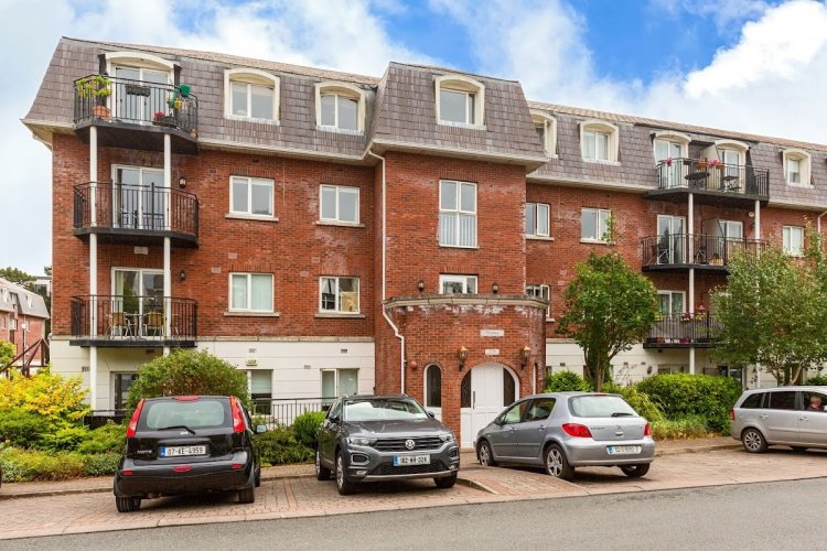 ACCOMMODATION: Entrance Hall: with timber flooring, ceiling coving, digital burglar alarm panel, door to storage and Hot Press Living Room/ Dining Room: 4.69m x 3.48m, with feature sandstone fireplace, oak timber flooring, security intercom, ceiling coving, television point, sliding patio doors to private facing balcony, opening to Kitchen: 3.47m x 1.99m, with an extensive range of built-in units and worktops, Zanussi built-in oven and four ring hob, stainless steel sink extractor fan, fridge/freezer, washing machine, dishwasher, stainless steel sink unit, mosaic tiled splashbacks, ceramic tiled floor and feature circular window bringing in extra light HALLWAY TO TWO BEDROOMS: Master Bedroom: 3.68m x 2.57m, with an extensive range of built-in wardrobes with overhead storage and shelf over bed, timber floors, television point, window overlooking gardens and door to En-Suite Shower Room: with fully tiled step in shower with glass door, wash hand basin with tiled splashback and fitted light over, wc, ceramic tiled floor and extractor fan Bedroom 2: 3.66m x 2.43m, with built-in wardrobes, timber floors, window overlooking gardens Bathroom: 2.18m x 1.81m with white suite comprising bath with shower over, wash hand basin with strip lighting over, wc, part ceramic tiled walls, ceramic tiled floor and extractor fan Management Agents: Indigo Property Management Annual Service Charge: €1200 approximately per annum Designated car space number 56 (secure underground parking area) BER C1 Ber Number 115376584 152.33 kWh/m2/yr