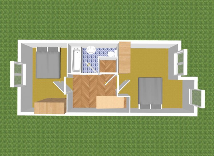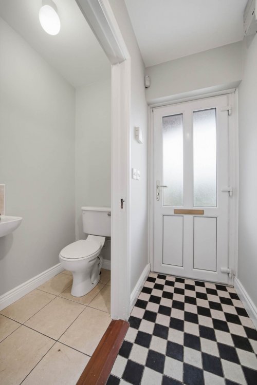 Guest W.C. 1.00m x 1.58m Tiled floor, w.c., w.h.b., splashback tiles, extractor fan.