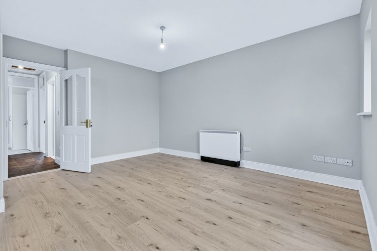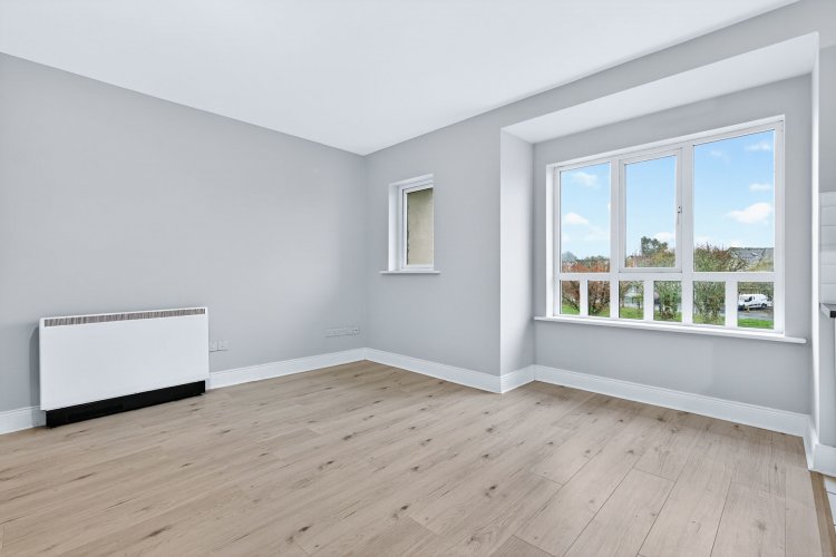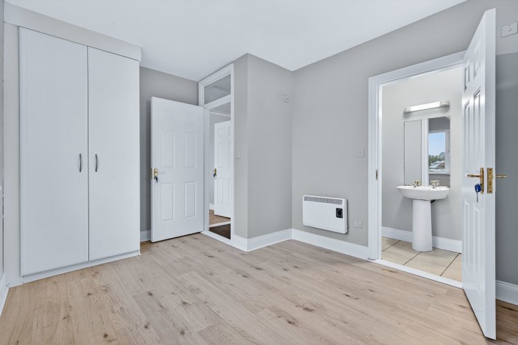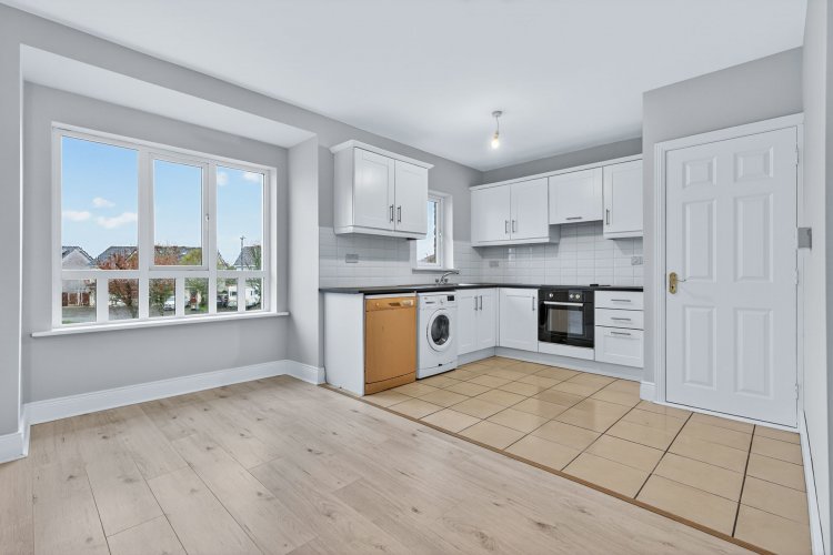 Finished with laminate floor in the dining/living area which has a bay window style feature and a fully fitted kitchen with tiled flooring in the kitchen and tiled back splash. This room has generous natural light from three windows and a large centre window ideal for the dining area overlooks the green area within the scheme. This area also includes a large store room off to the side which would be ideal as a food larder.
