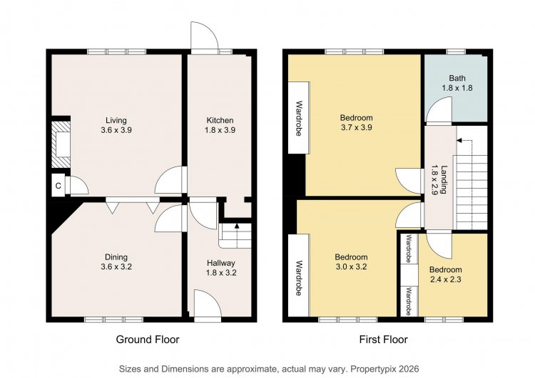 Bedroom 1 – 3.7m x 3.9m (withwardrobe)