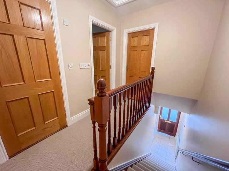Upstairs is arranged between a main bathroom and two sizeable double bedrooms, with the master bedroom availing of its own en-suite.