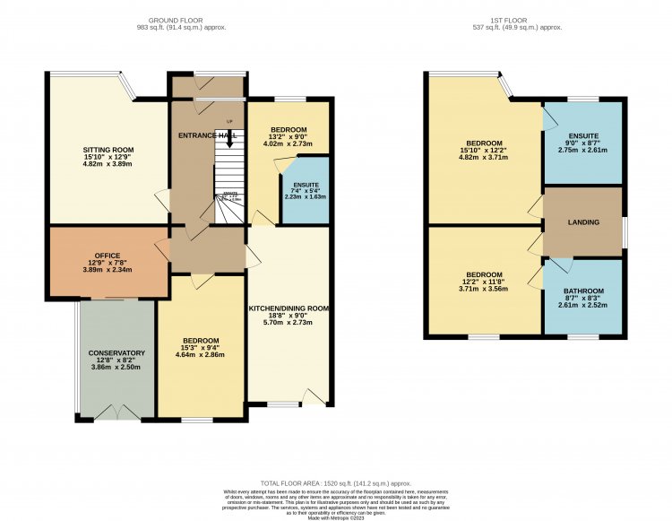 Upstairs consists of two double bedrooms and two ensuites. One double bedroom is situated at the front of the home and boasts an ensuite bathroom with an electric shower, partially tiled walls, a heated towel radiator and undersink storage. The second upstairs bedroom is at the rear of the home and benefits from an interconnecting shower room which can also be accessed from the landing. The attic is also accessed via the landing.